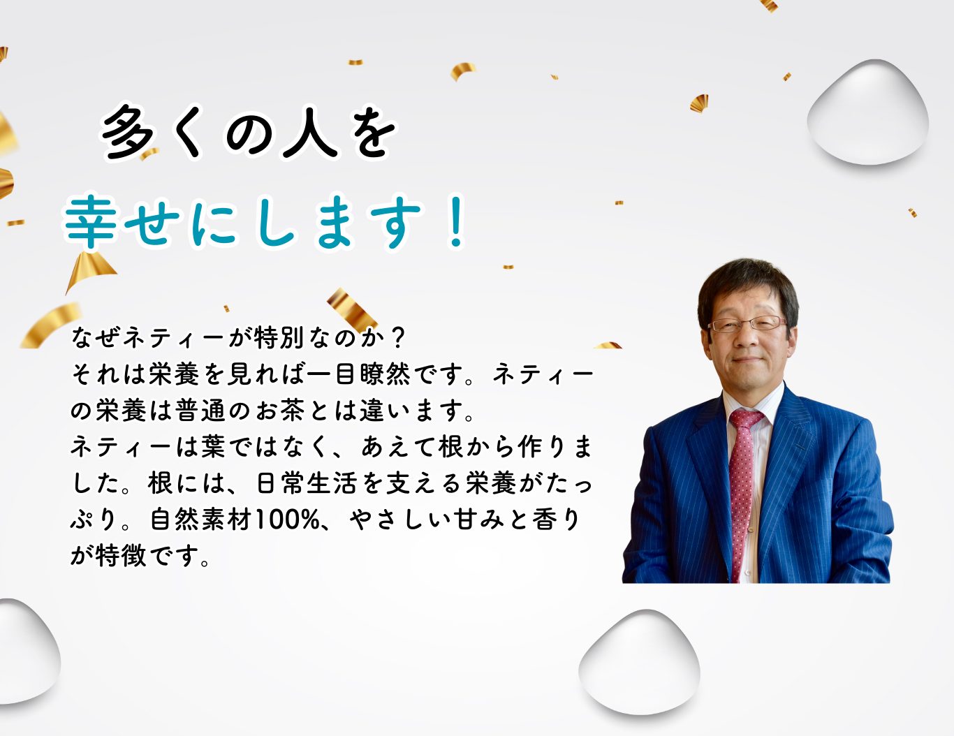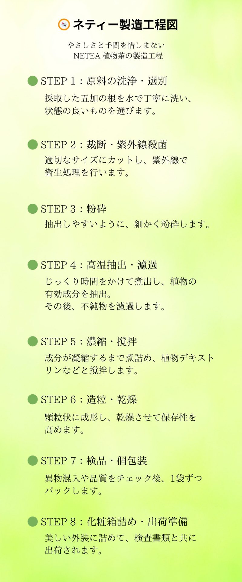 ネティーの原料、自然の力をそのままに