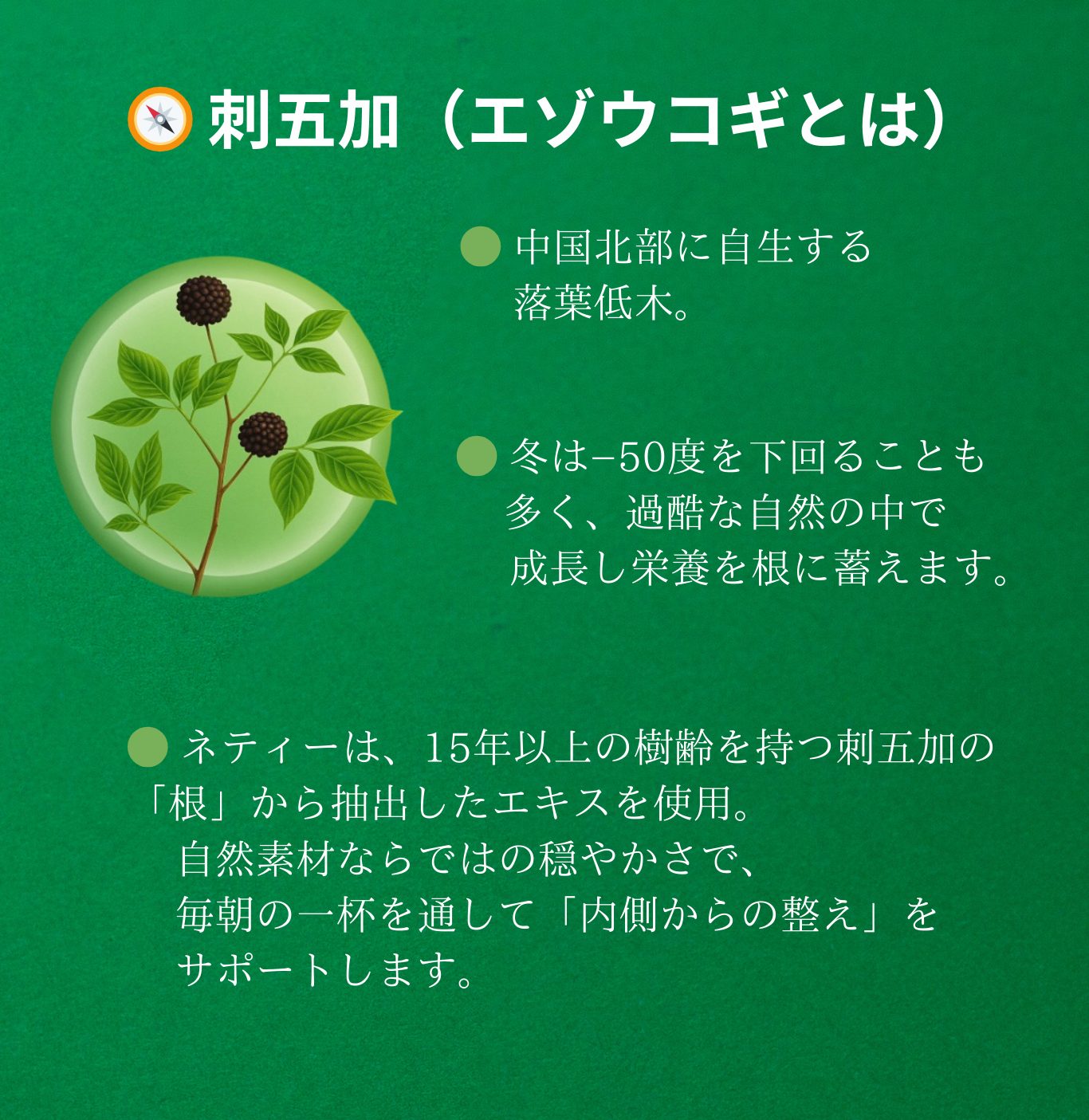 ✅ 15年以上育った刺五加(エゾウコギ)の根を使用